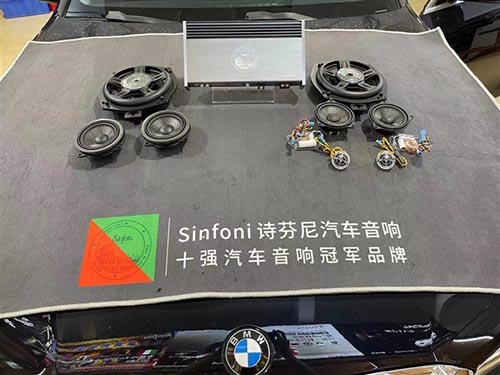 在音響配置的選擇方面,我們的改裝師根據車主要求以及考慮到寶馬325Li的情況,將前聲場喇叭替換成一套詩芬尼寶馬專用高音+中音+低音 各一對,高音的穿透力極強,中音則溫潤、舒適有感染力。兩只詩芬尼寶馬低音則用于補充低音部分,讓整個音場增加了氛圍和動感。后聲場則在門板上無損安裝詩芬尼寶馬專車專用中音一對,全部器材的原位安裝更是節省了時間,也不破壞內飾解決車主的憂慮問題。