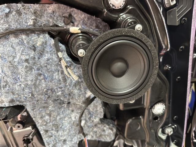 前后聲場,我們統一升級勁浪 IS BMW 100L 兩分頻。它和前面提到的 IS BMW 100 同屬勁浪寶馬專用系列,但“L”版本針對門板安裝做了優化,喇叭靈敏度更高,中低頻更扎實,聲音下潛更有力。安裝完成之后最明顯的感受就是:聲音更有“包圍感”了。原車門板喇叭聽起來干癟、不夠有厚度,而升級后低頻量感明顯增強,鼓聲、貝斯都能“打”在身上,而且不會糊,層次清晰,聽久也不累。