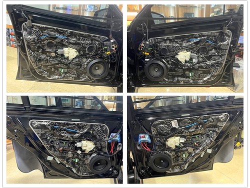 前后門板隔音原位無損安裝詩芬尼中低音喇叭,為減少音樂散射現象,改裝師還特意為其添加了美音圈