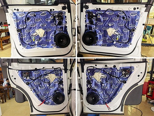 四門隔音是降低風噪和提升汽車音響音質的重要部位。使用大能藍金剛將車門里外鈑金板都進行止振來隔音,以及密封處理,增加車門鈑金的強度和厚度,杜絕門門板的共振和有效阻擋外部風噪入侵;車門飾蓋用溫莎吸音棉做了吸音處理,能夠吸收其余噪音,讓車內更安靜。