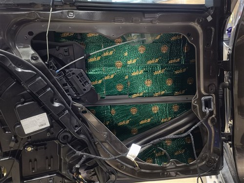 奔馳ML350的原車門板鈑金也很薄弱,喇叭在工作的狀態(tài)下容易產(chǎn)生共振噪音,所以在改裝音響之前需要先給四門做大能超級盾隔音止震處理,減少喇叭與車門之間產(chǎn)生的共振聲,使喇叭的聲音變得更純厚更集中。