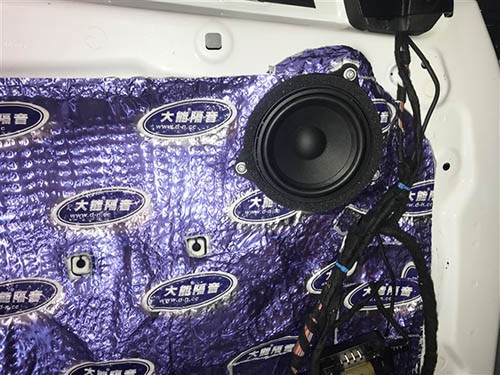 安裝中低音喇叭時為了更好的固定和音效,改裝過程中的每個細節都處理到位。使用原車的原線路進行改裝,不對原車進行改造。