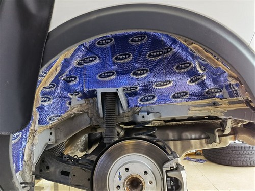 針對標致5008汽車內部的胎噪問題,海林改裝師也是著重的加強處理,使用藍金剛+超級溫莎對輪弧、葉子板部位進行四層隔音吸音降噪處理,通過環保有效的隔音材料層層吸收隔絕,抑制胎噪向車內傳入。
