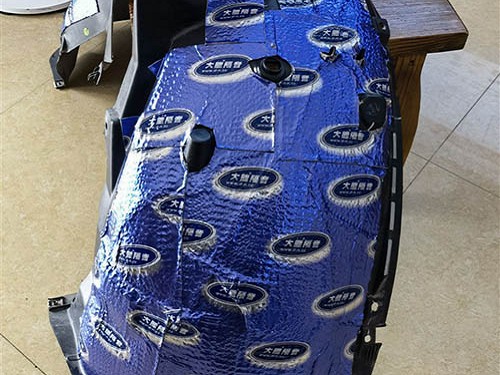 原車底盤和后尾箱位置的隔音措施也是很欠缺的,導致車內產生嚴重的低頻共振噪音,因此,我們選用藍金剛將整個車底盤和后尾箱進行滿貼,再用滾輪進行全車隔音壓緊壓實,這樣能夠有效增強鈑金的抗振性,再使用噪音終結者進行第二層加強吸音處理,有效抑制車內的噪音嗡鳴聲。
