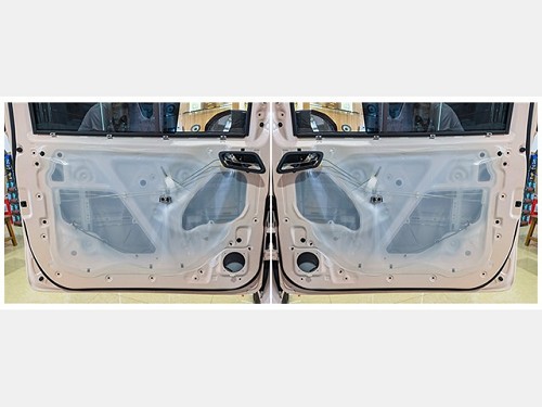 門板貼上第二層隔音,增強車門鈑金厚實,使車內形成密封的箱體