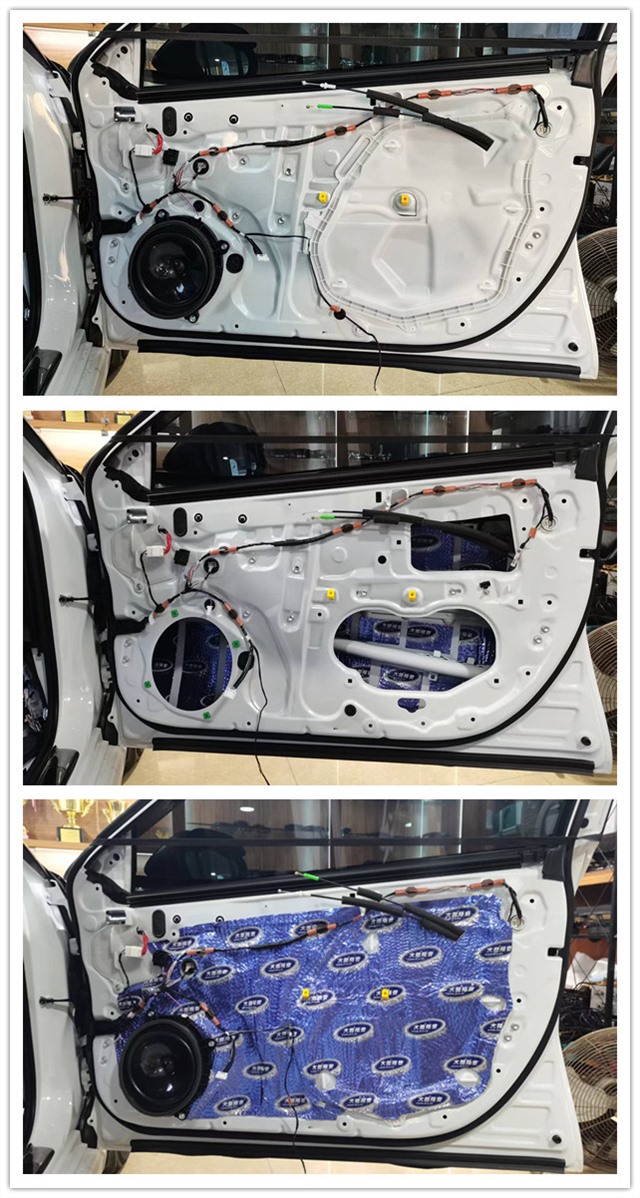 前后門板飾蓋使用超級溫莎進(jìn)行隔音填充,不留縫隙