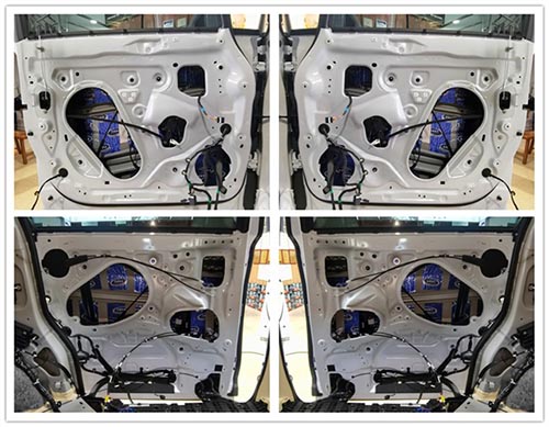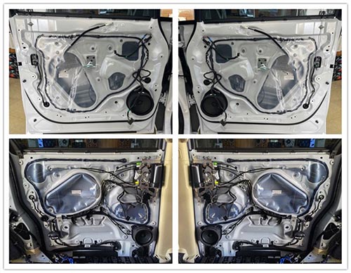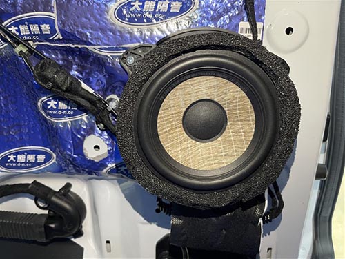 前后門板使用大能藍(lán)金剛進(jìn)行第二層隔音處理,打造一個(gè)封閉安靜的“箱體”,為中低音喇叭安裝做好準(zhǔn)備