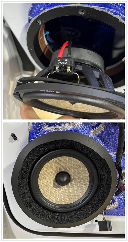 勁浪PS165FXE亞麻高音喇叭安裝近照及前門板復(fù)原后的效果展示