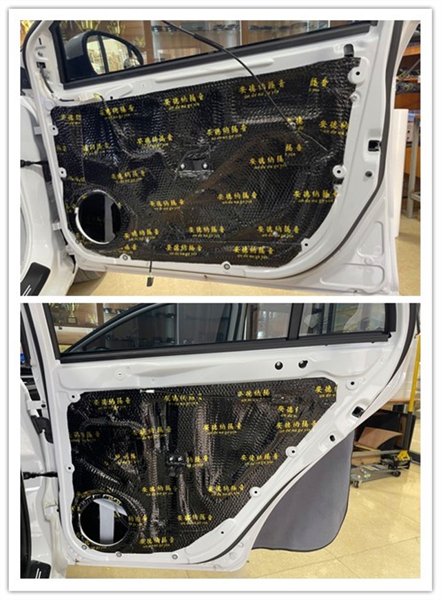 在朋友推薦下,車主來到了泉州海林,改裝師根據車主的聽音要求和改裝預算,結合原車的空間結構及環境特點搭配了一套個性化的音響方案。在安裝喇叭前,首先使用安德納環保隔音材料對門板進行止震隔音處理,解決行駛中噪音帶來的影響,為車主打造一個舒適的車廂空間,也為即將升級的喇叭創造一個安靜的發聲環境。