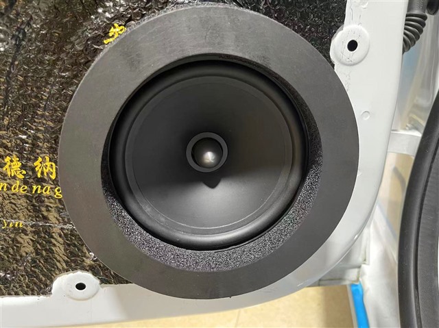 勁浪黃盆KX2中低音喇叭無損安裝在前門板,安裝時還加裝了美音圈,能填充原車內飾板和喇叭間的間隙,讓聲音集中向車內傳出,而不會四周發散。