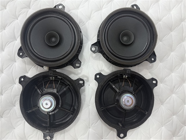 拆下的原車(chē)?yán)龋馁|(zhì)輕、盆架設(shè)計(jì)簡(jiǎn)單,塑料感十足,音質(zhì)表現(xiàn)平平。與之形成鮮明對(duì)比的是做工精良、技術(shù)含量更高的勁浪亞麻盆喇叭,預(yù)示著音質(zhì)的飛躍。