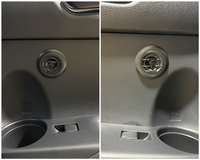 前聲場(chǎng)的高音單元被精心安裝在儀表臺(tái)兩側(cè)的原裝位,實(shí)現(xiàn)無(wú)損替換。這個(gè)位置有助于營(yíng)造出開(kāi)闊且定位精準(zhǔn)的聲場(chǎng),讓主副駕乘客都能處于最佳的“皇帝位”聽(tīng)音區(qū)域。