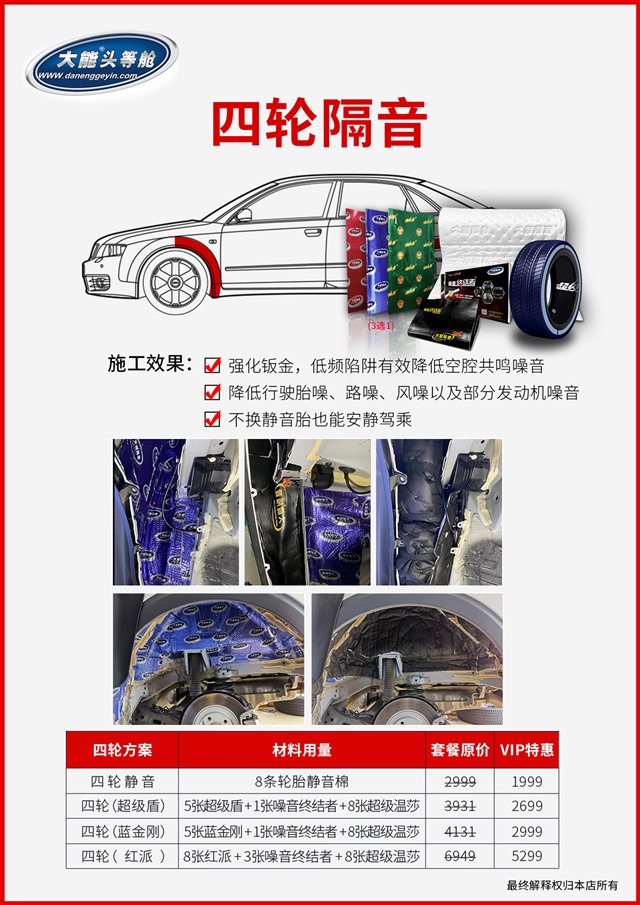 隔音升級對隔音材料的選擇至關重要。然而大能隔音,成為車主的首選!做過大能隔音的客戶都知道它的隔音減震效果非常好,而且材料環保無害,防火阻燃!是汽車做隔音的首選品牌!