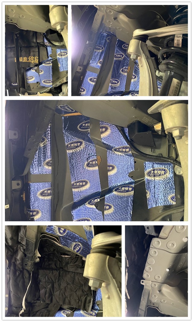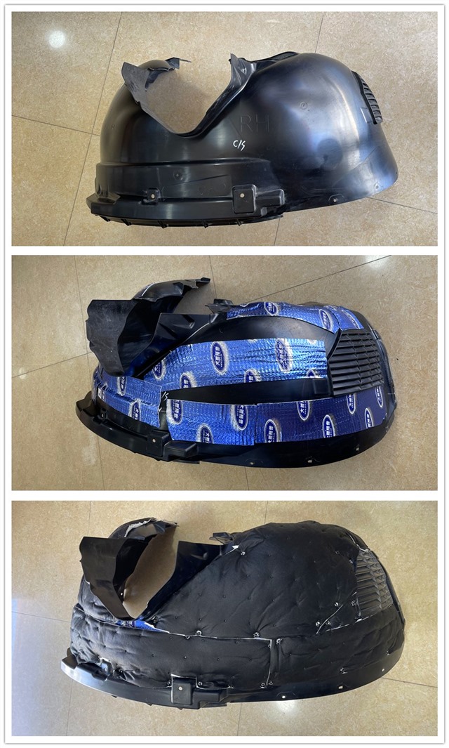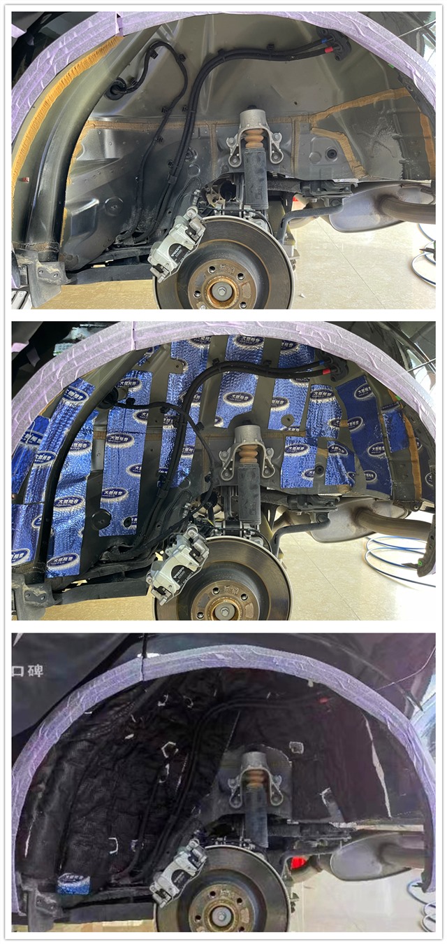 為了讓隔音材料與安裝面緊密黏合,先對葉子板進行到位的清潔工作,然后進行雙層隔音施工,讓每塊隔音材料都發揮出應有的隔音降噪效果。有針對性的對葉子板進行隔音施工,獲得明顯的隔音效果。