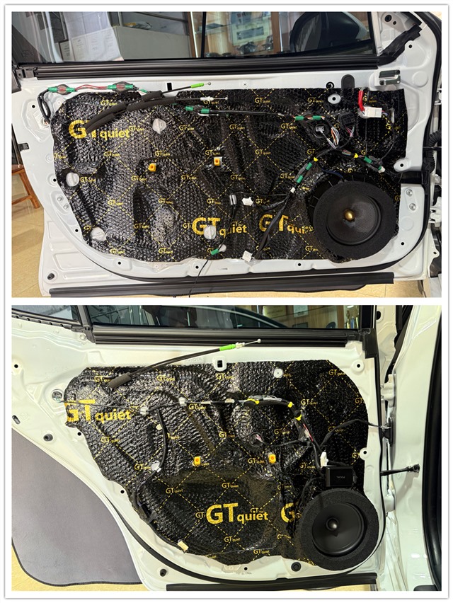 音響效果的好壞不僅僅取決于喇叭本身,車門的隔音處理同樣至關重要。原車門板的隔音不足,容易導致外界噪音的干擾,影響音響效果。為此,我們選用了GT隔音材料,對四門進行了全面隔音處理。