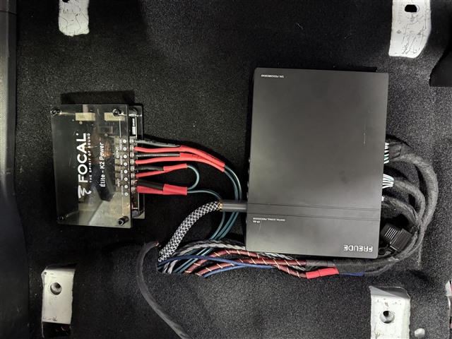 在音響器材的選擇上,這位車主的眼光可以說是非常到位的:喇叭升級(jí)為法國(guó)勁浪黃盆KX2兩分頻,這套喇叭無論在解析力、聲音的通透度還是動(dòng)態(tài)表現(xiàn)上都極為出色。高音安裝在門板三角位,聲場(chǎng)定位更準(zhǔn)確。中低音喇叭則無損安裝在原位,既保證了音效,也不影響原車外觀。