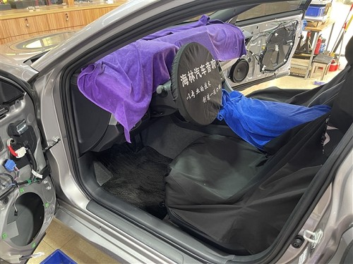 前后門板使用大能藍金剛進行第一層隔音處理,加強鈑金剛性,減少振動