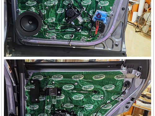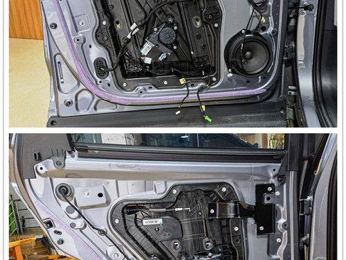 在音響升級前,首先對四門進行專業(yè)的隔音處理。改裝師使用大能超級盾隔音材料和吸音棉對門板鈑金及門板飾蓋進行了全面的隔音吸音處理。有效減少行駛噪音的傳入,還能為揚聲器提供更為安靜的工作環(huán)境,從而提升音響的整體表現(xiàn)。接下來,為前后聲場安裝了詩芬尼S65兩分頻。中低音單元原位無損安裝在門板上,并且加裝了美音圈,進一步提升了聲音的聚焦感和層次感。
