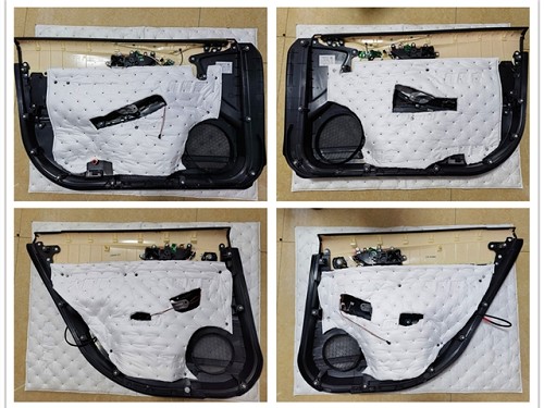 為了全面提升音響系統的音質表現,車主選擇了勁浪PS165FXE亞麻盆兩分頻喇叭作為前聲場的升級方案,后聲場則選用了勁浪165A-GL兩分頻喇叭。為了確保喇叭能夠發揮出最佳的效果,在安裝喇叭之前,改裝師先對車門板進行了專業的隔音處理,使用了大能超級盾材料為喇叭提供了更為純凈的發聲環境。前后門板隔音處理后,原位無損安裝中低音,使其完美融入車內環境。
