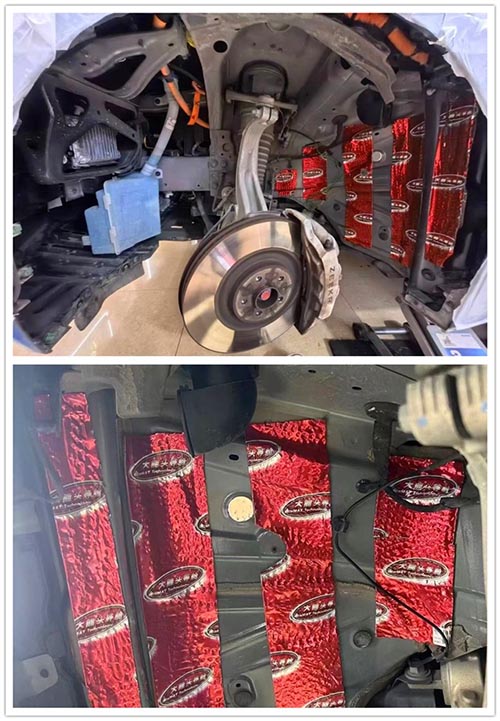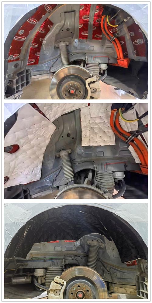 前輪先針對性粘貼大能紅派隔音材料