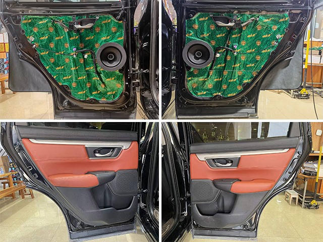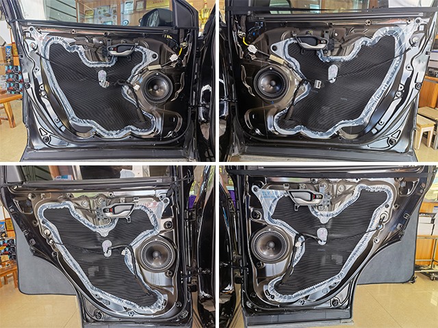 門板是風(fēng)噪噪音的重災(zāi)區(qū),對此改裝技師使用大能超級盾+吸音棉對門板及飾蓋進(jìn)行了三層隔音處理,還加裝了大能密封條,不僅抑制了鈑金的振動,嚴(yán)密的包裹更是阻隔了風(fēng)噪的進(jìn)入,解決了門板噪音問題,也為喇叭提供了一個良好的工作環(huán)境。