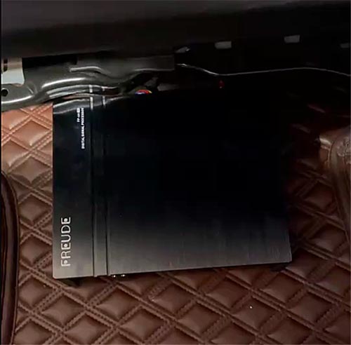 將弗萊德FP-6A V2 DSP功放使用專車專用線束、無(wú)損安裝在主駕位座椅下